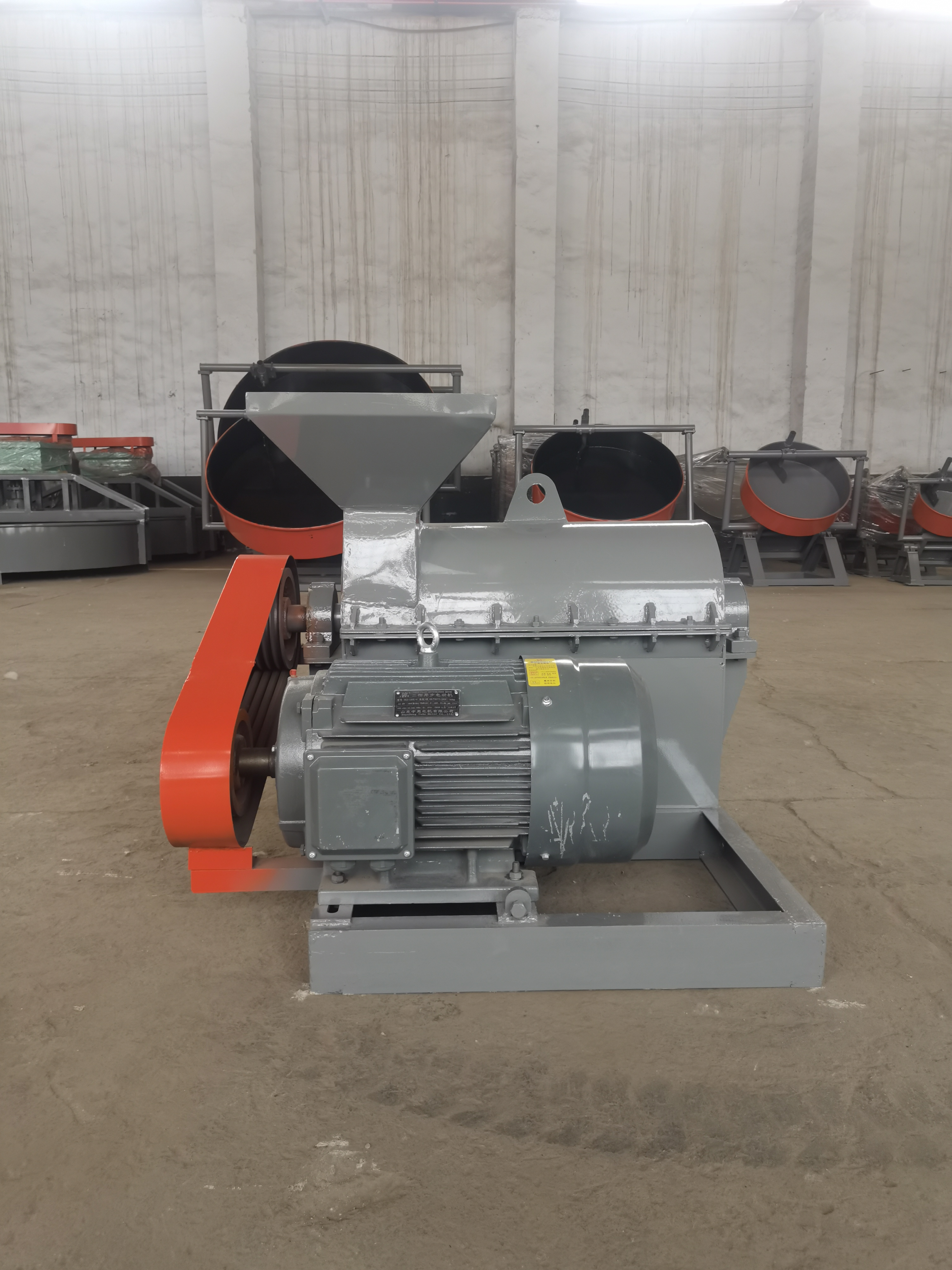 从图片中可以看出,这台设备结构紧凑,占地不大,整个机壳和转子部分加厚处理,提升了耐磨性。客户表示,原本需要两个人手动打碎、筛分的湿料,现在直接铲车送入粉碎机,一人看管、一人上料就够用,省人工又省时间。